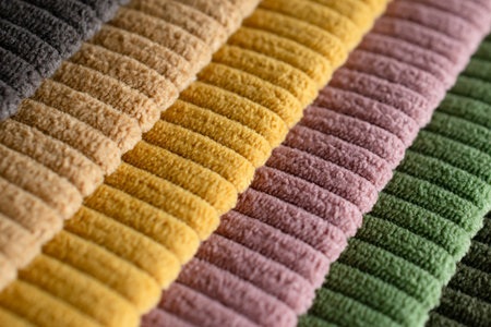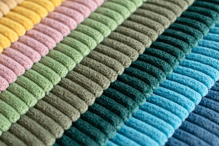 Macro view of vibrant corduroy fabric showcasing intricate texture and ridges