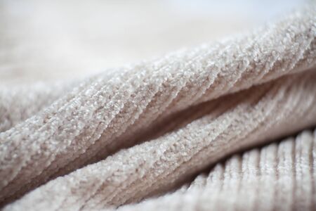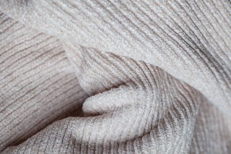 Wool fabric texture close up background. Cozy style cloth. Wavy folds material