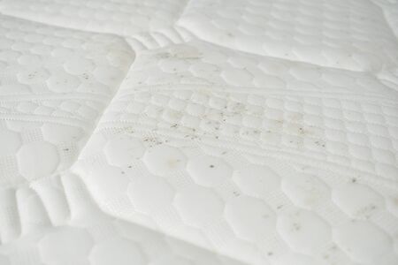 Mildew and dirt on a bed. Mattress with spots of mold spores.
