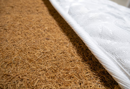 Coconut coir mattress filler. Coconut fiber close-up. Manufacture of furniture, mattress materials
