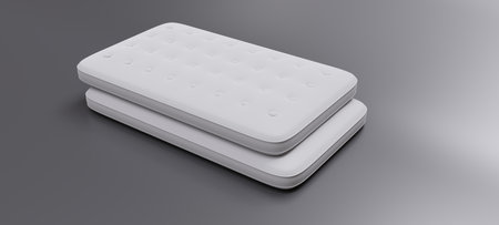Bed mattress two single white color isolated on gray background. Comfort sleep concept, view from above. 3d render