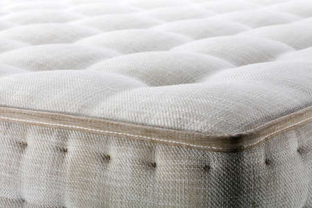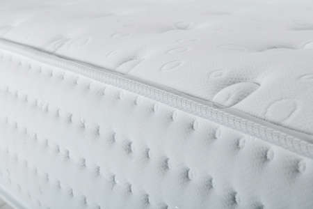Close up shot of white orthopedic mattress top side surface pattern with a lot of copy space for text. Hypoallergenic foam matress for proper spinal alingment and pressure point relief. Background.