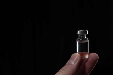 a scientist or doctor holds a vaccine in his hand. selective focus.