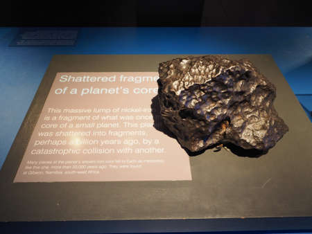 BELFAST, UK - CIRCA JUNE 2018: Shattered fragment of a nickel iron planet core, at the Ulster Museum