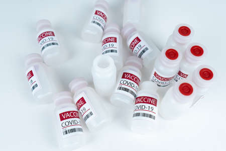 Covid-2019 virus concept. Syringe and ampoules with a vaccine against the virus.