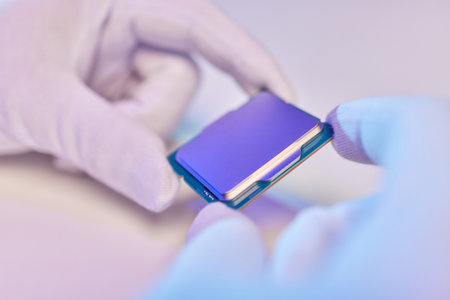Camera modules in scientist hands. Different sensor and technology smartphone small cameras in laboratory.
