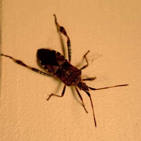 Adult Leaf footed Bug of the Leptoglossus genus