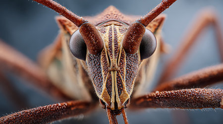 brown tree bug with compound eyes under hight magnification