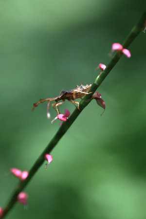 A cletus punktiger larva. Arthropoda insecta hemiptera coreidae. A pest that likes plants of the Gramineae family and causes damage to rice.