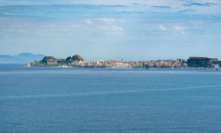 A view of Corfu Town, the capital of the island of Kerkyra, or Corfu, seen from the sea.