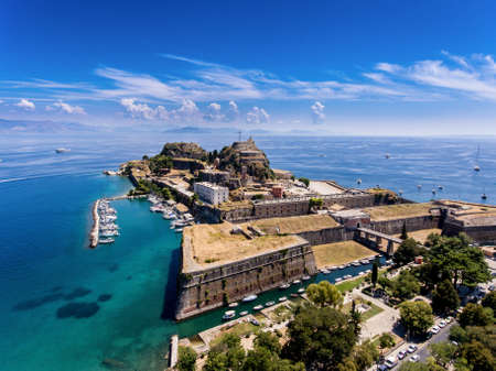 Corfu old fortress aerial view. The old venetian fortress near the capital of Kerkyra Island, now an important tourist attraction.