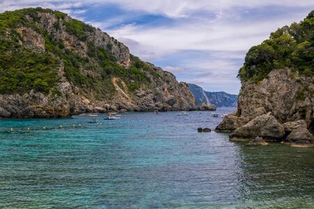 beautiful bay with rocky beach La Grotta in Paleokastritsa, Corfu island, Greece