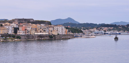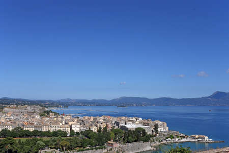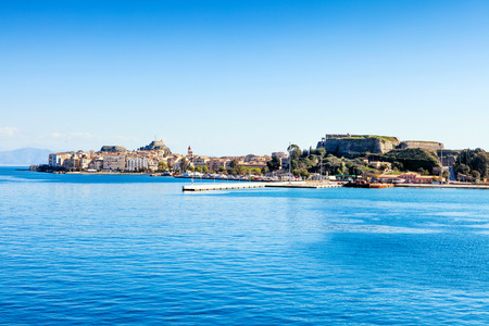 Corfu, Kerkira panorama on the old fortress, view from the sea.