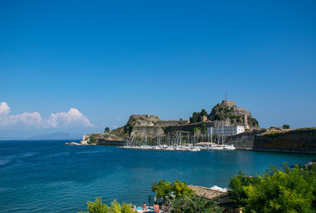 Corfu, Greece - 10.07.2021: View of the old fortress of Corfu