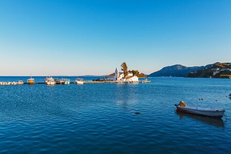 Panoramic view of the beautiful Vlacherna monastery on the island of Corfu in Greece (Kerkyra)