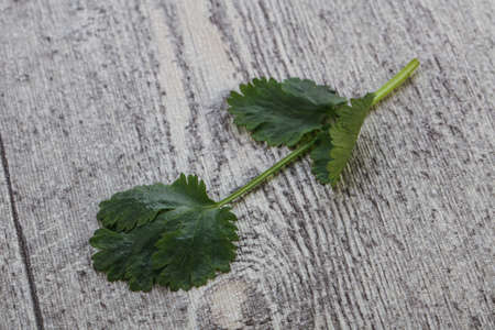 Coriander leaves on the wood background