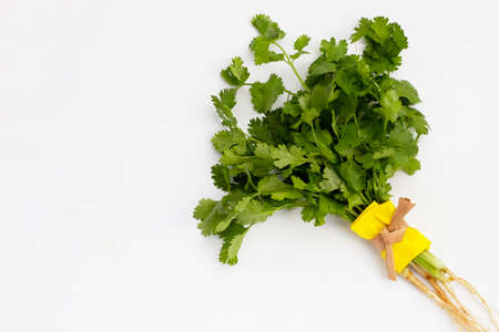 Fresh organic raw coriander leaf isolated on white background Culinary aromatic herb
