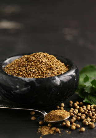 natural ground coriander on the table