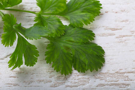 Coriander leaves on a light background. Healthy food concept.