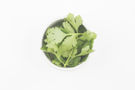 Coriander Leaves in a bowl isolated on white background