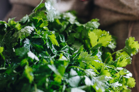 Macro shot of fresh parsley and cilantro