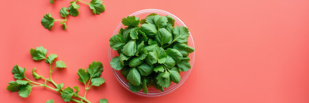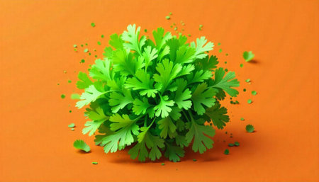 Bright green cilantro plant on orange background, vibrant and fresh