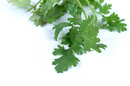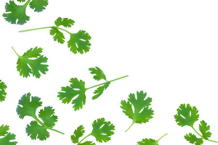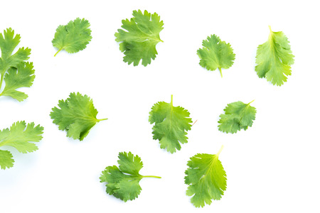Coriander leaves isolated on white background. Space copy