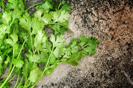 Coriander on the gray background