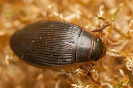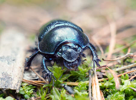 Macro shot of forest dung beetle (Anoplotrupes stercorosus) on white background surface