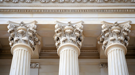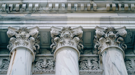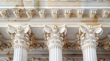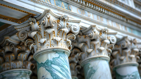 a close-up of a classical facade, with its intricate details and columns, created with generative ai