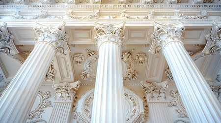 Classical architecture elements with decorative columns. Ideal for luxury, history, or architectural presentation themes.