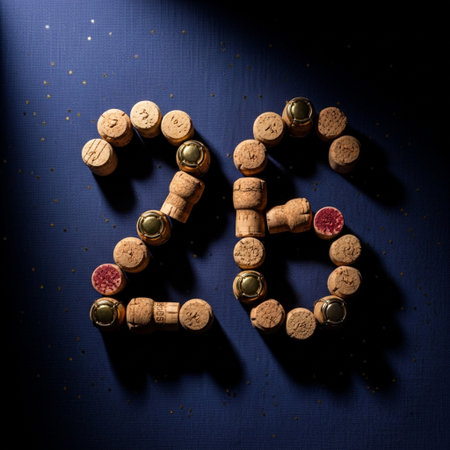 cork wine stoppers with different digits indicate the year a top view / 2019 did not like everything
