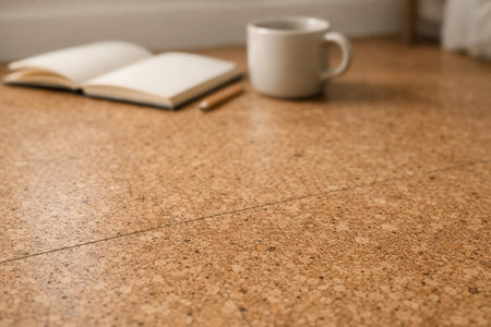 Cozy Home Interior With Warm Natural Cork Flooring Tiles