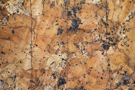 Macro shot of a cork board with a distinctive speckled pattern and natural cracks, perfect for a textured background.