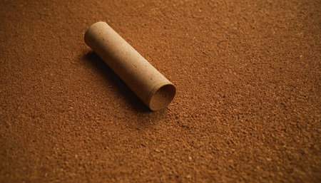 A creative digital illustration depicting Rustic artistic background of corkboard texture in warm browns, tactile casual mood, soft natural fiber lighting. This AI-generated artwork features unique visual elements suitable for various commercial and editorial applications. AI-generated illustration.