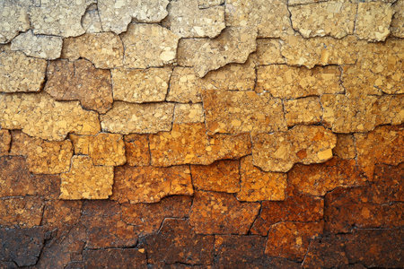 a wooden cork wall background photo (7338) featuring metallic rectangles, texture-rich canvases, organic abstractions, and high resolution. the nature-based patterns and mosaic composition create a visually captivating image. the trompe l'oeil technique adds depth and realism to the overall aesthetic. ai generated