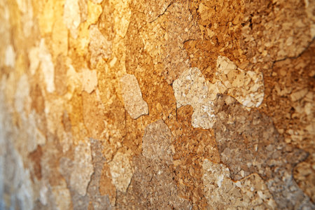 Close-up of a cork surface displaying natural textures and patterns, enhanced by soft, warm lighting for an organic aesthetic.
