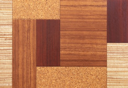 Laminate wood floor on cork background texture. Wooden laminate floor and corkboard with copy space