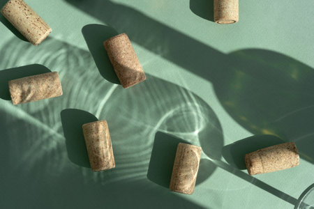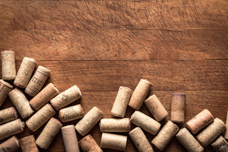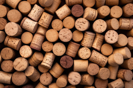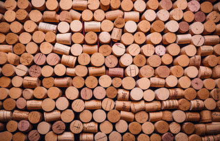 Natural wine and champagne corks arranged as a background. Eco-friendly material, sustainable design concept, close-up texture