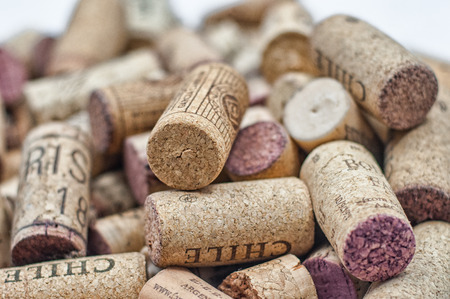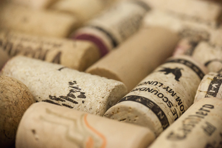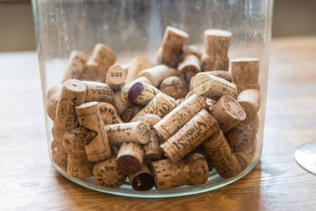 WOODBRIDGE, NEW JERSEY - October 13, 2018: A collection of wine corks from various vineyards is showne