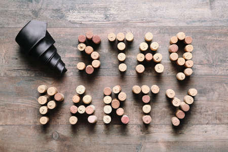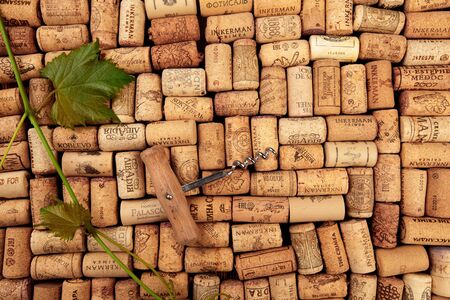 Moscow, Russia-August 29, 2019: background from wine cork wine producers