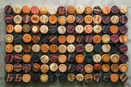 Wine corks, corkboard pattern, horizontal arrangement, wine-related texture, wine enthusiast, winery decor, rustic backdrop, winemaking material, cork surface, vintage style, hobby wineist, recycled corks, corkboard design, cork mosaic, textured background, craft and DIY , cork crafting, wine tasting, wine culture, winemaking supply, wine-themed art, cellar decor, wine room aesthetic, corkboard display, wine bar ambiance, wine corkboard pattern, rustic winery, wine aficionado, home bar decor, wine cellar detail, wine hobby project, upcycled cork art, winemaking tradition, wine industry, textured arrangement, cork artistry, creative wine design, winery atmosphere, wine collector, crafty wine enthusiast, wine
