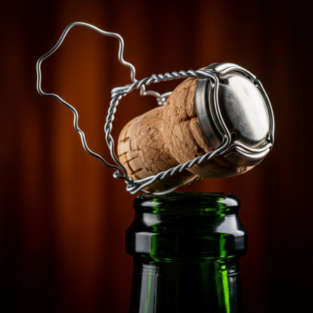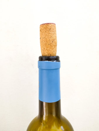Closeup of a wine bottle with cork. Simple, elegant, use for concepts like celebration, relaxation, or winemaking. Suitable for food, beverage, and lifestyle related content.