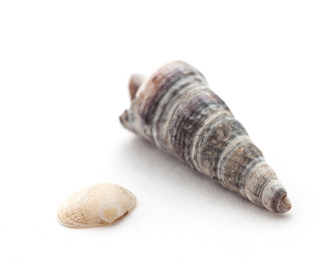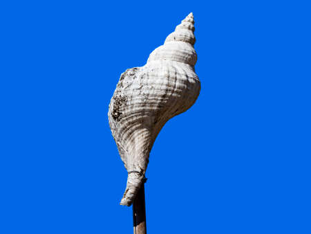 Sea shell isolated on white. Vertical image of ornament marine conch.