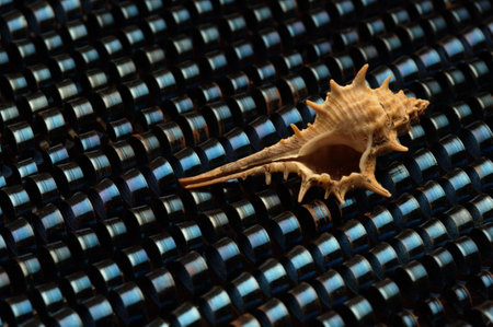 seashell on a dark background, the play of light and shadow on the texture of a clam shell