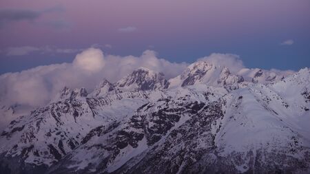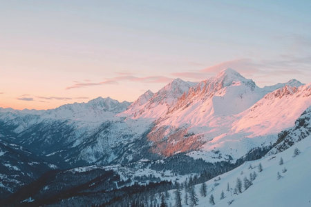 Snowy mountain peaks beautiful landscape at sunset