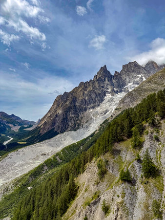 view of an alpine mountain landscape near Mont Blanc, Chamonix, Switzerland