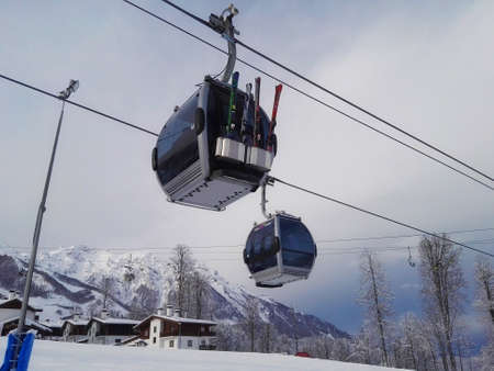 .Sochi, Russia - January 25, 2018, cable car in the mountains Cloudy weather.