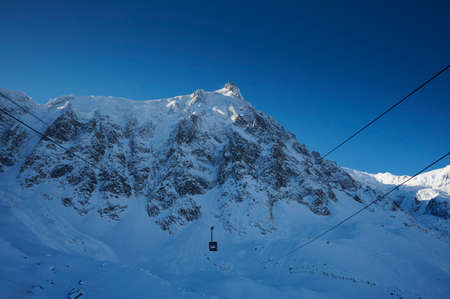 CHAMONIX, FRANCE - JANUARY 28: Cable Car from Chamonix to the summit of the Aiguille du Midi on January 28, 2015 in Chamonix, France.
