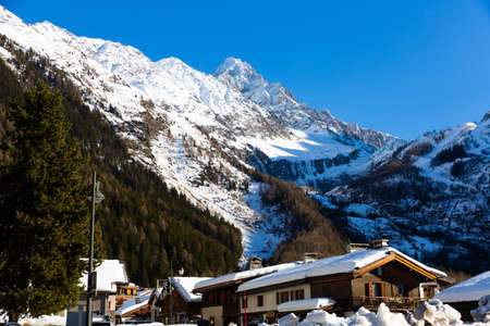 Snowcapped mountain range, Alpine Resort, Aosta Valley, Courmayeur, Northern Italy, Italy